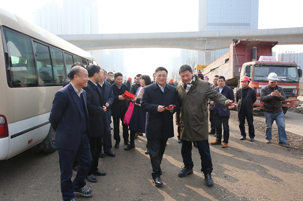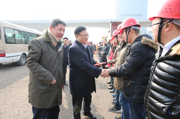 2月6日上午,副市長項永丹赴機場公路改建工程市心路互通地面道路施工現場對工程建設者進行慰問。市交通運輸局副局長華歷,副區長洪關良,區交通運輸局局長姜紀呈,集團董事長、總經理方軍,副總經理金文華陪同。