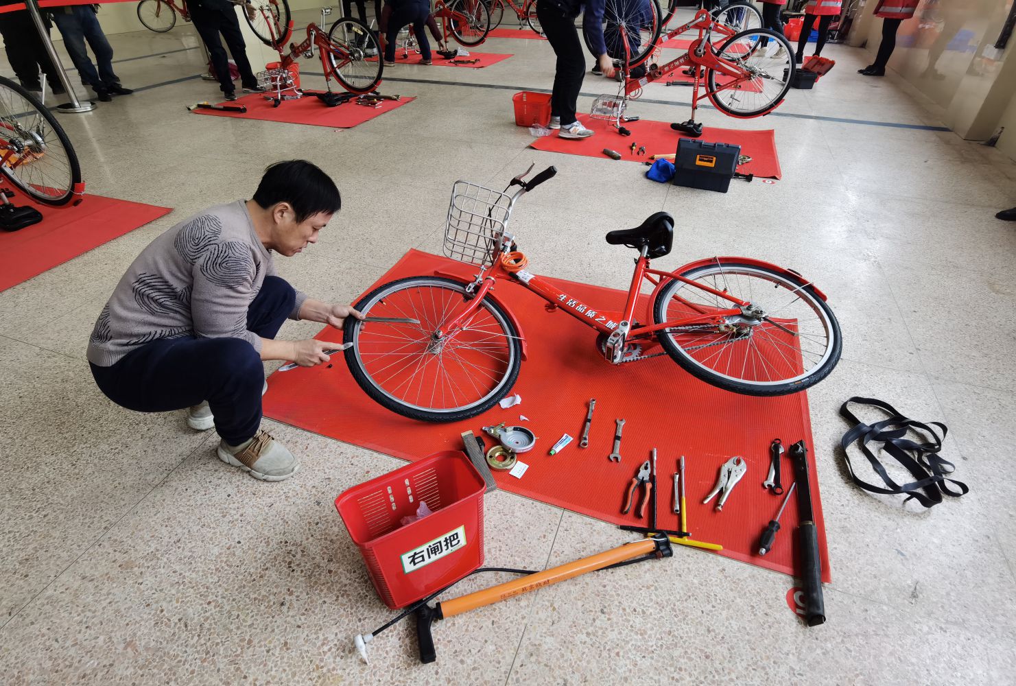 此次比賽共匯集了來自杭州公共自行車城東、城南、城西、城北、錢塘及蕭山、余杭公共自行車的七支精英隊伍,設(shè)置了自行車維修、系統(tǒng)維修、車輛調(diào)度、巡查服務(wù)四大類項目,考察了選手對維修工藝規(guī)程的熟練度和操作規(guī)范性。