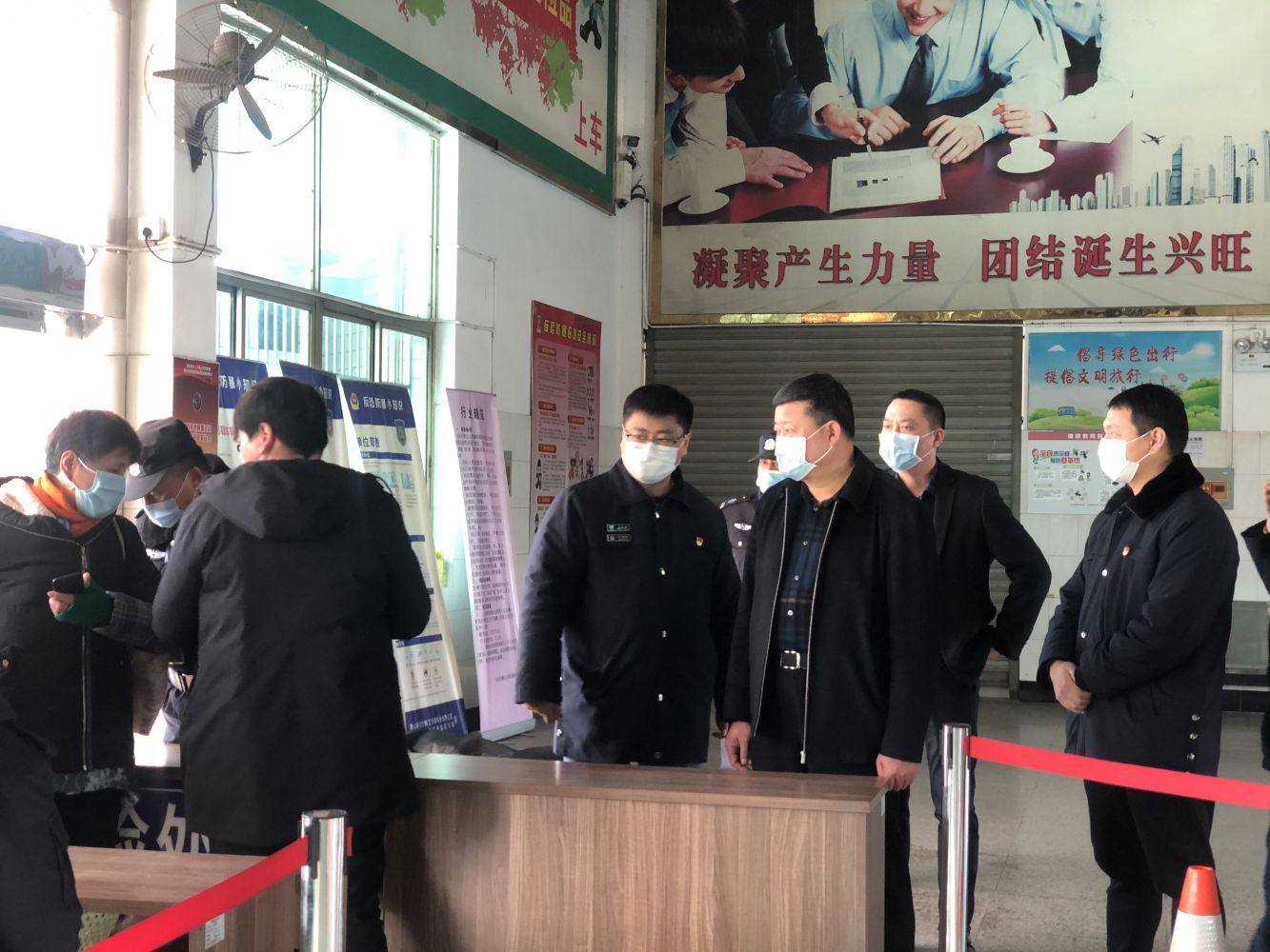 1月12日下午,蕭山交投集團黨委書記、董事長祝關翔,黨委副書記、副總經理虞國燦等領導一行蒞臨公交公司檢查指導疫情防控工作,公司班子成員陪同。