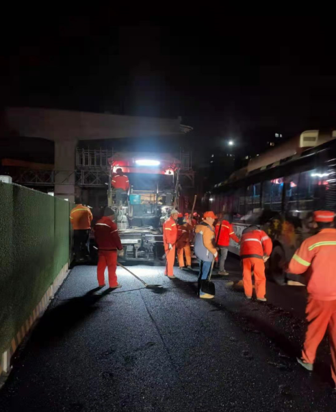 時代大道改建項目工程率先進行道路集中大中修,方案考慮到占道施工會影響交通;以及修復后,過往車輛頻繁,會影響道路養護等問題,特安排夜間搶修,并順利完成此次任務。共維修面積約10498.3平方米,累計修復3.75萬平方米,每周修復300平方米。