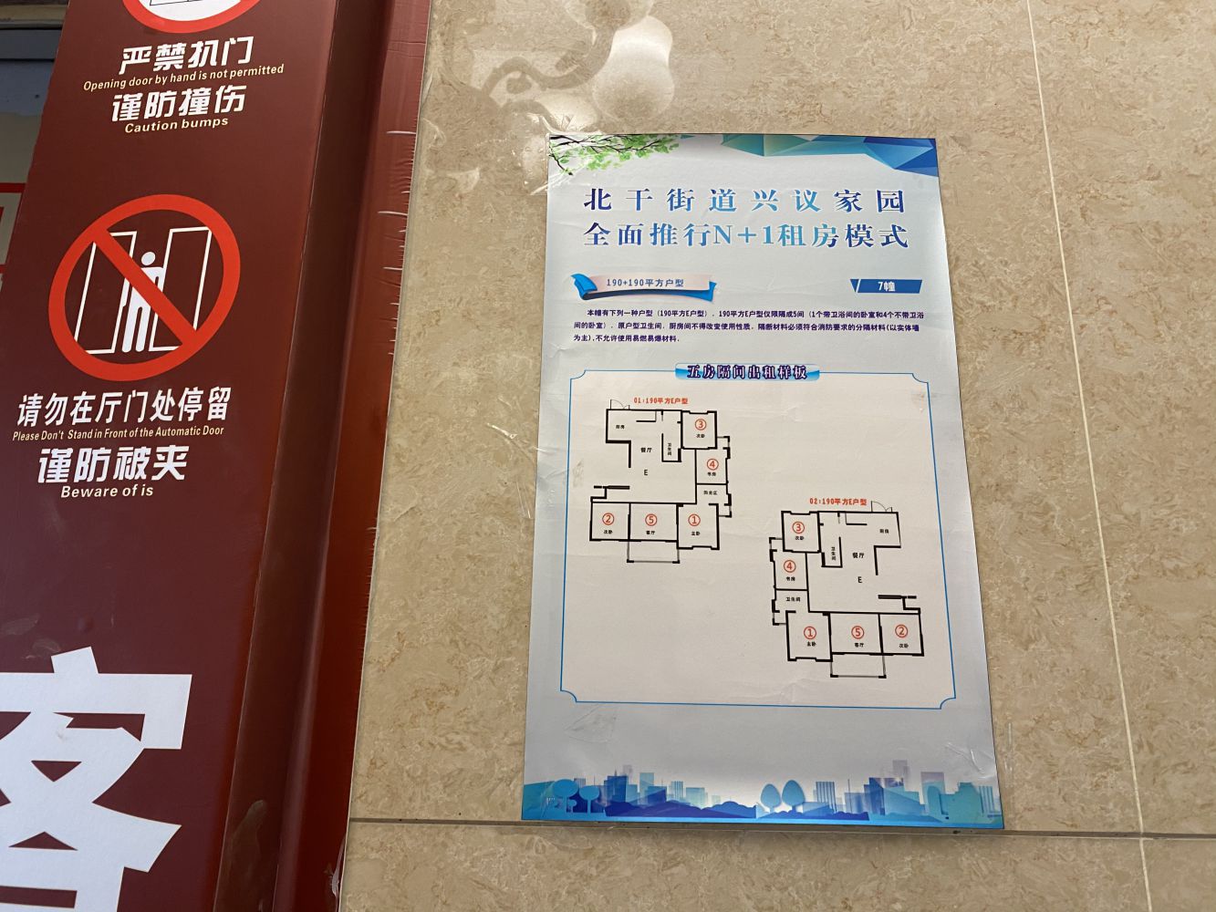 二是為使業(yè)主對裝修要求家喻戶曉,嚴禁違規(guī)操作,違章塔建。物業(yè)做了大量的工作(1)在小區(qū)顯眼處拉橫幅作宣傳(2)在小區(qū)入囗處擺放戶型裝修示意圖,讓業(yè)主了解裝修的要求(3)在電梯轎廂內(nèi)張?zhí)?ldquo;10嚴禁”“6統(tǒng)一”要求,讓業(yè)主清楚明白哪些可以,哪些嚴禁的。
