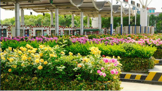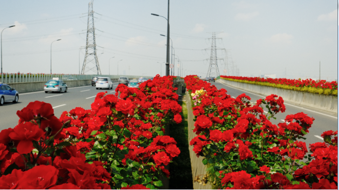 這條“空中花廊”西接西興大橋,東至杭州蕭山國際機場大門,全長約19.55公里,其中高速公路高架橋長約14.6公里,為杭州亞運會主要迎賓路段。 該路段綠化彩化由機場高速公司于2020年6月實施完成。為更好地延續杭城高架月季特色,展示生態園林城市形象,沿線共栽植彩云、梅郎口紅、紅蓯蓉、仙境、小桃紅、金鳳凰、莫海姆宮殿7個品種16.2萬株月季,形成色彩繽紛且獨具特色的迎賓花帶。