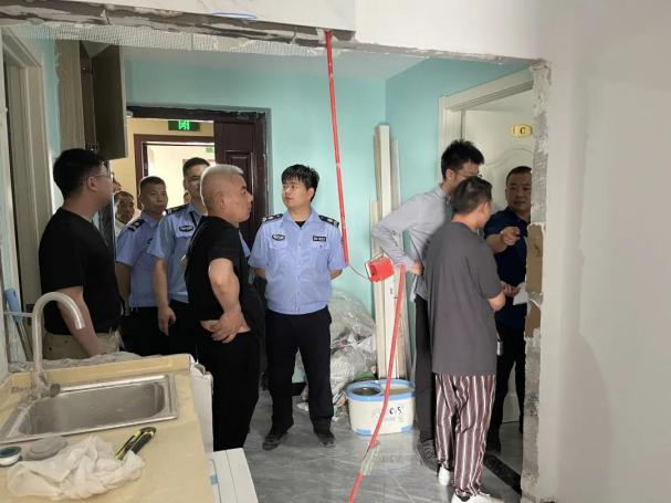 近日,北干街道消安科聯(lián)合興議社區(qū)、濱弘物業(yè)等相關(guān)單位工作人員對興議家園小區(qū)裝修現(xiàn)場開展整治工作。