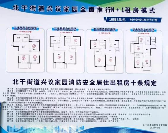 針對興議家園安置房裝修前期管控,濱弘物業(yè)編制了興議家園裝修“十嚴(yán)禁”“六統(tǒng)一”管理條例,并將裝修管理條例、樣板模式貼在每棟樓的電梯里,北干街道出臺《北干街道興議家園全面推行N+1租房模式及消防安全居住出租房十條規(guī)定》,筑牢出租房消防安全“防火墻”。