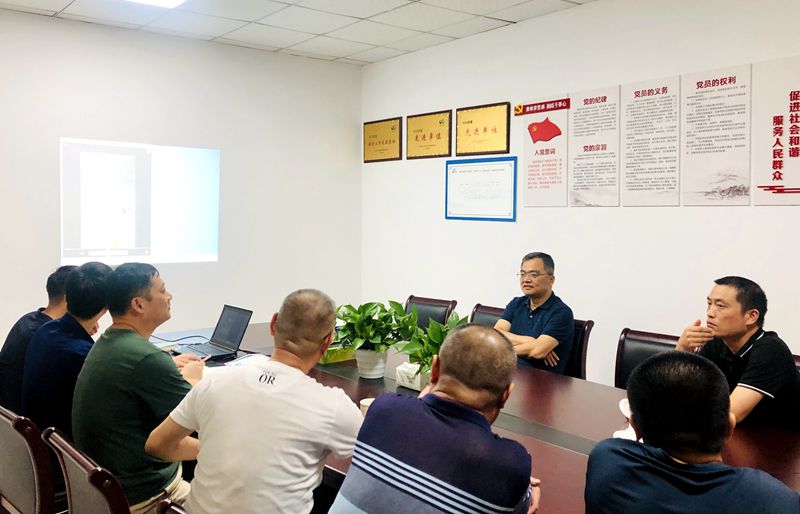 公司總經理防汛指揮長葉利民簡要匯報企業防汛抗臺工作,簡明扼要地向夏董匯報了企業搶險援助工作,以及“三防”應急預案、應急小分隊人員組建及機械與物資配備情況。
