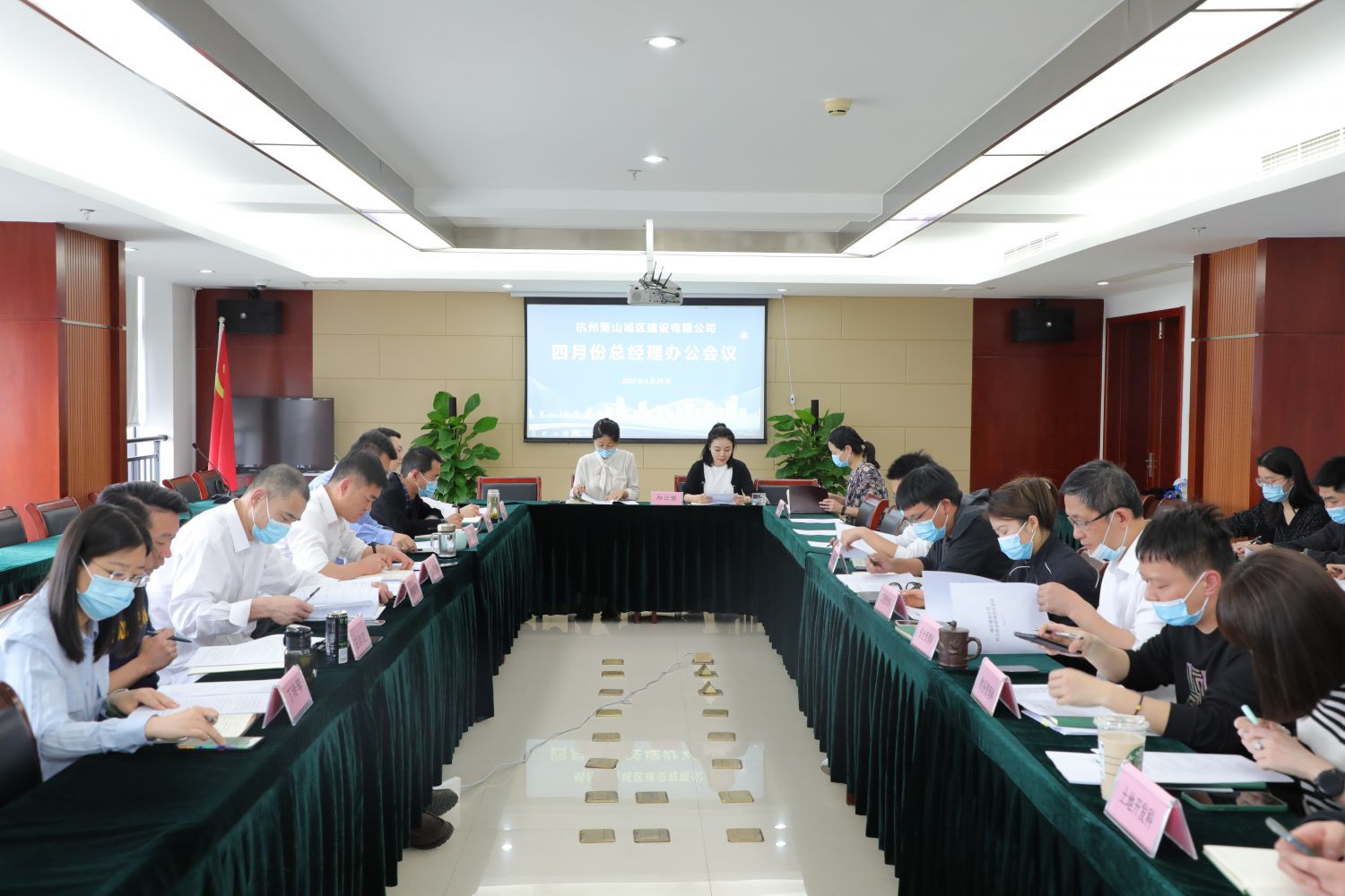 2022年4月20日下午,城區建設公司四月份總經理辦公會議在公司1916會議室召開。集團黨委委員、副總經理韓朋朋,城區建設公司班子成員、濱弘物業公司班子成員、公司副科級以上中層干部和各科室員工代表參加會議。會議主要回顧公司近期工作情況,對下階段工作進行部署和要求。