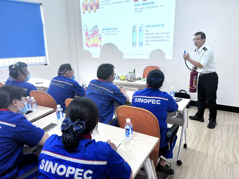培訓中,教官向大家詳細講解了崗位所涉及的相關安全知識,主要包括滅火器等消防器材的原理及操作方法、逃生和急救知識、安全體系的建立和運作方式等。蜀山加油站在理論培訓后開展消防技能實操演練,理論聯系實踐,更好地做好融會貫通。