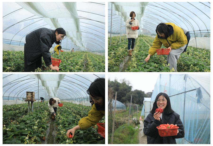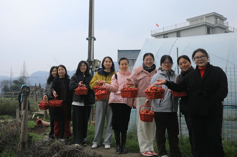 女職工們手提小籃,穿梭在田壟間,一邊采摘,一邊交流,歡聲笑語不斷,盡情享受著田園采摘的樂趣。采摘結(jié)束后,大家還品嘗了新鮮的草莓,并合影留念,記錄下這美好時刻。