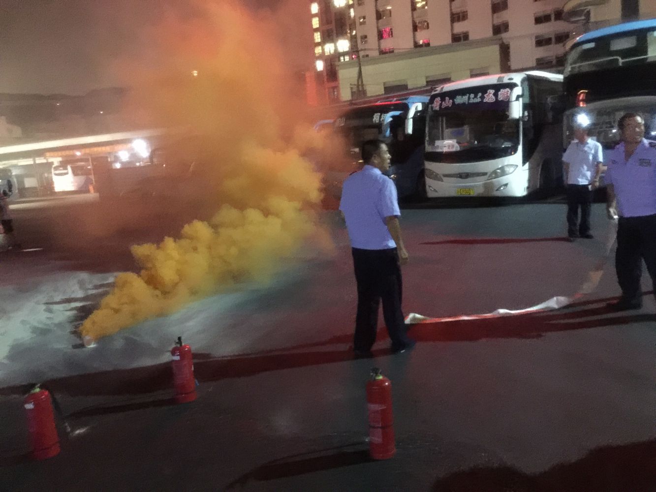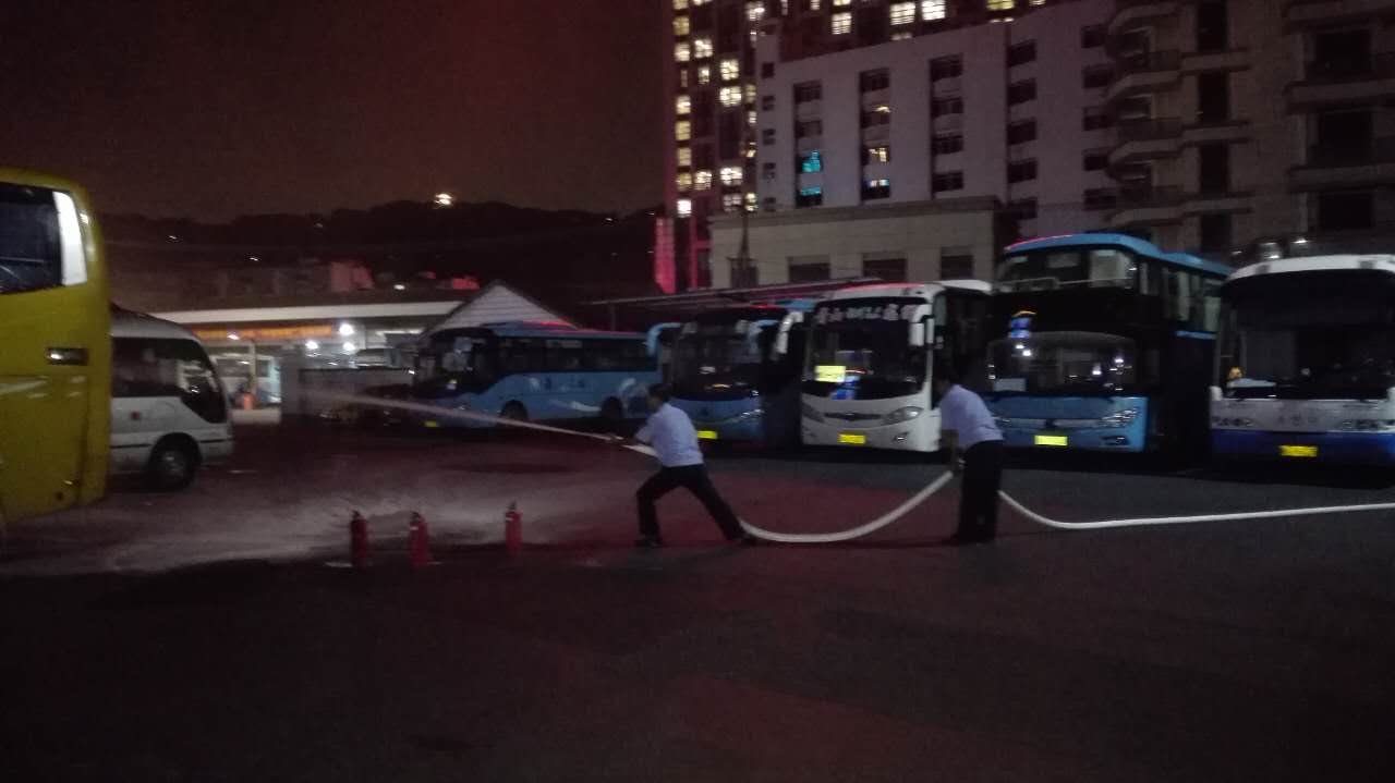 為進一步配合集團做好十九大前期維穩安保工作,落實責任主體,強化安全紅線,8月21日晚7時,長運公司物業管理部會同蕭然保安公司在總站站場開展了站場消防應急演練。本次演練過程從保安人員巡邏時發現停車場一輛客車起火到按各個流程進行滅火撲救,全程時長為6分15秒,各保安分工明確,配合到位,動作流程嫻熟。但此次演練過程中也存在一些不足,因保安巡邏時未帶對講機,致使第一時間發現火情時不能用對講機通知其他值班保安,采用迅速跑回去通知形式,時間上有所浪費。此次消防應急演練旨在進一步提升保安人員應對突發事件的處置能力,處置流程的到位程度。