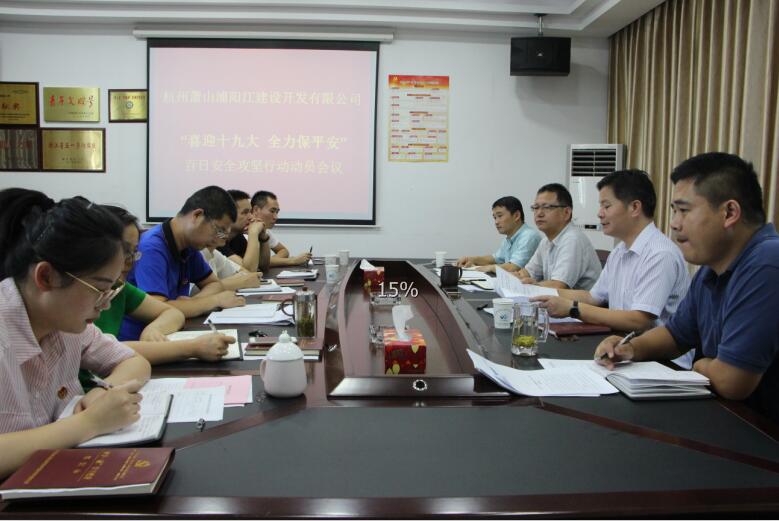 為響應(yīng)集團(tuán)“喜迎十九大 全力保平安”動(dòng)員大會(huì)精神,迎接黨的十九大順利召開(kāi),8月24日下午,浦陽(yáng)江開(kāi)發(fā)公司召開(kāi)“喜迎十九大 全力保平安”百日攻堅(jiān)行動(dòng)動(dòng)員會(huì)議,公司全體員工參加。會(huì)上,公司總經(jīng)理韓國(guó)海傳達(dá)了集團(tuán)“喜迎十九大 全力保平安”動(dòng)員會(huì)議祝董講話精神,同時(shí)結(jié)合公司實(shí)際工作提出了三點(diǎn)要求,一要思想認(rèn)識(shí)再提高,要求員工清醒認(rèn)識(shí)迎接十九大、大學(xué)生運(yùn)動(dòng)會(huì)及文明城市復(fù)評(píng)迎檢工作重要意義,加強(qiáng)對(duì)自身要求;二要工作措施再落實(shí),從工程建設(shè)和行政管理兩個(gè)方面對(duì)公司開(kāi)展的具體工作提出了詳細(xì)的要求;三要安全責(zé)任再細(xì)化,安全責(zé)任重于泰山,要求員工加強(qiáng)應(yīng)對(duì),杜絕安全生產(chǎn)事故的發(fā)生,保證工作平穩(wěn)順暢開(kāi)展。