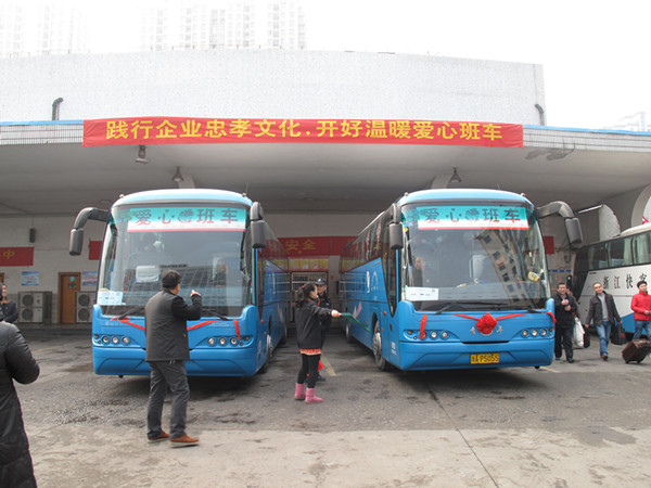 今年已是“愛心班車”第11次啟程。由蕭山長運(yùn)公司提供的這兩列“愛心班車”全程免費(fèi),服務(wù)對(duì)象主要是農(nóng)民工、環(huán)衛(wèi)工等外來在蕭務(wù)工人員。這既是蕭山長運(yùn)回饋社會(huì)、致力公益的一項(xiàng)老傳統(tǒng),也是蕭山長運(yùn)在交投集團(tuán)領(lǐng)導(dǎo)下踐行忠孝文化、實(shí)現(xiàn)文化強(qiáng)企的一項(xiàng)新舉措。由于旅途漫長,公司還貼心地為乘客們準(zhǔn)備了早餐和飲用水,為他們送上濃濃的關(guān)切與祝福。