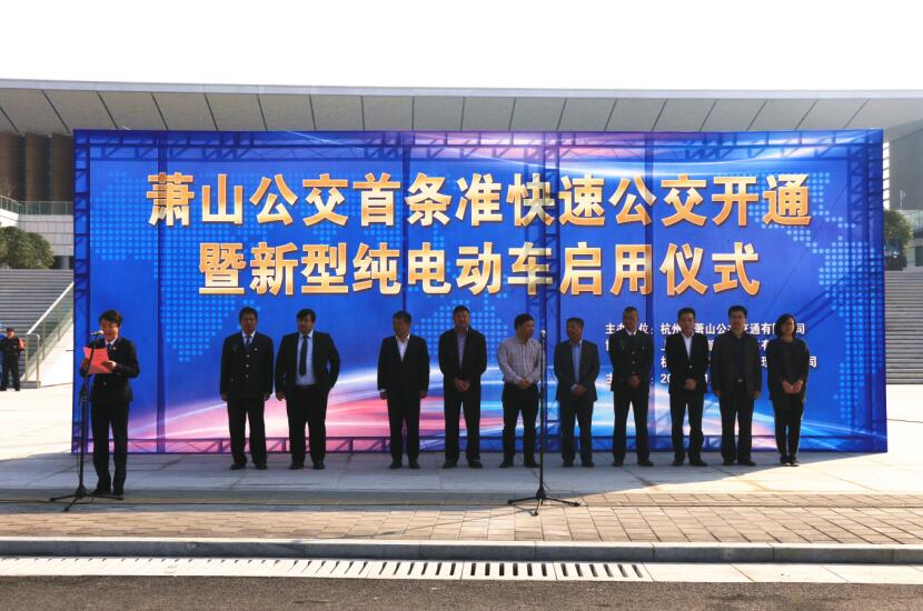 11月3日上午9時(shí),蕭山公交首條準(zhǔn)快速公交開(kāi)通暨新型純電動(dòng)車(chē)啟用儀式在火車(chē)南站西廣場(chǎng)舉行。區(qū)政府辦公室副主任,區(qū)交通運(yùn)輸局黨委書(shū)記、局長(zhǎng)姜紀(jì)呈,區(qū)交投集團(tuán)黨委書(shū)記、董事長(zhǎng)祝關(guān)翔,杭州公交集團(tuán)黨委副書(shū)記、副總經(jīng)理、蕭山公交董事長(zhǎng)翁軍,區(qū)交投集團(tuán)黨委委員、副總經(jīng)理王齊天,區(qū)交通運(yùn)輸局運(yùn)管科科長(zhǎng)馮曉娜,杭州公交集團(tuán)計(jì)劃財(cái)務(wù)部經(jīng)理陸梨華,萬(wàn)向新能源有限公司總經(jīng)理陳軍,杭州晟越商業(yè)經(jīng)營(yíng)管理有限公司副總經(jīng)理?xiàng)钫瘢约肮救w班子領(lǐng)導(dǎo)、干部職工代表參加了開(kāi)通儀式。儀式由公司黨委書(shū)記王黎洪主持。