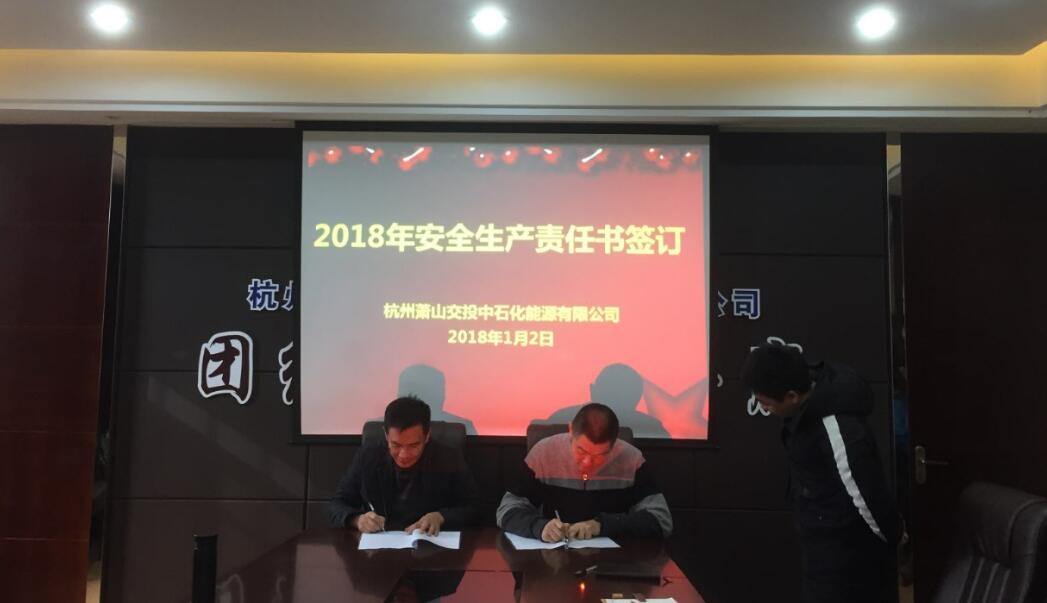 會上,安全營運部首先從業務經營數據、巡站檢查情況、加油站服務情況等方面對12月份工作進行了總結。重點匯報了12月份在建盈北站開展的雙層罐改造施工項目檢查中發現的施工單位不安全因素,以及建盈南北站隱患排查和整改情況。隨后,進行了2018年全公司安全責任書的簽訂,分別由公司董事長、總經理、副總經理、部門負責人及各部室成員、加油站站長相互簽訂安全責任書,確保層層落實責任到人。