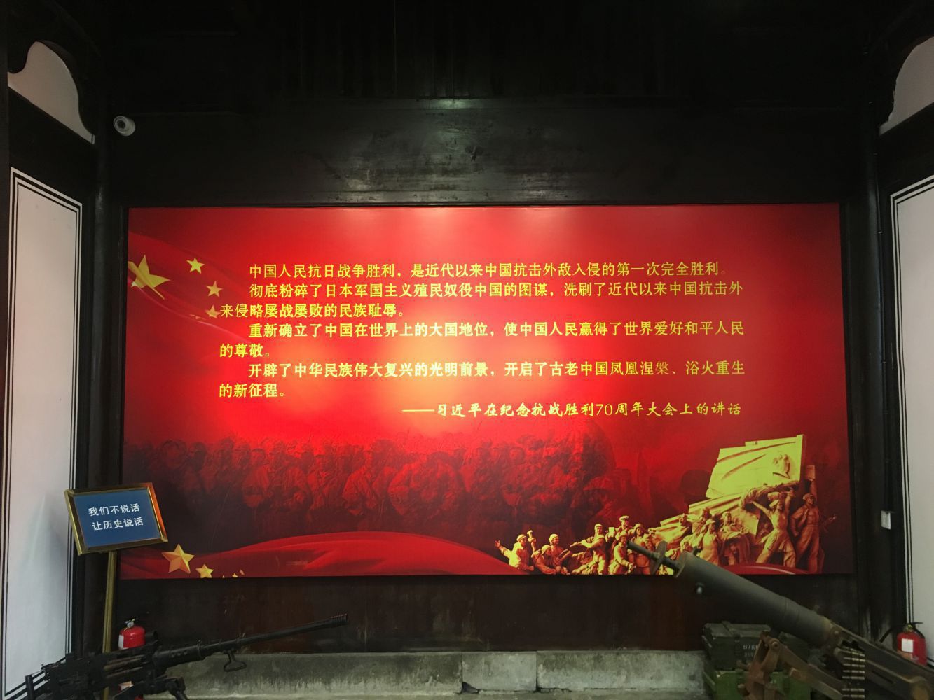 參觀完中美合作抗戰紀念館后,我們來到了蕭山抗戰紀念館。館內主要分為四部分主題展示,日軍入侵、山河破碎;侵略罪行,不容淡忘;奮起抗戰,日月重光;反思戰爭,永續和平。古舊的白墻黑瓦,還原了戰時面貌,館內收藏了所有關于蕭山的抗戰歷史,陳列、展示供后人參觀、學習、吊唁,銘記這段不能忘卻的歷史。。